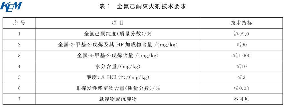 全氟己酮灭火剂在常温下是无色透明的液体,其技术要求应符合表1的规定。