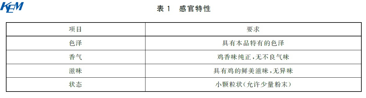 以味精、食用盐、鸡肉/鸡骨的粉末或其浓缩抽提物、 5'-呈味核苷酸二钠及其他辅料为原料,添加或不添加香辛料和(或)食品用香精香料等经混合、造粒、干燥等工序加工而成的具有鸡肉的鲜味和香味的固态复合调味料。