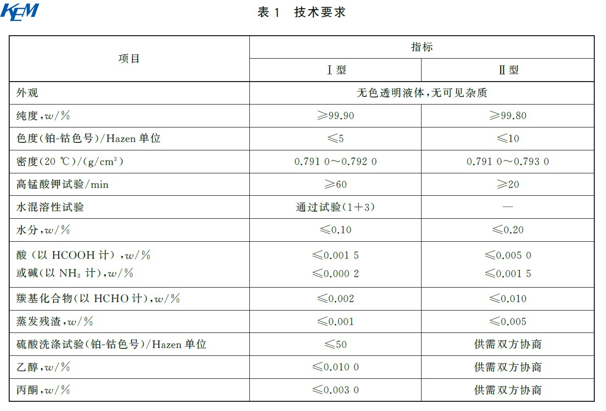 范围、术语和定义本文件规定了工业用甲醇的要求、检验规则及标志、包装、运输、贮存,描述了相应的试验方法。本文件适用于以煤、天然气、焦炉煤气为原料合成的工业用甲醇及碳酸二甲酯与乙醇经过酯交换反应副产的工业用甲醇。注:甲醇分子式:CH4O,相对分子质量:32.04(按2022年国际相对原子质量)。本文件没有需要界定的术语和定义。要求工业用甲醇应符合表1所示的技术要求。如需要,可在供需双方商定的情况下增加表2的可选技术要求。