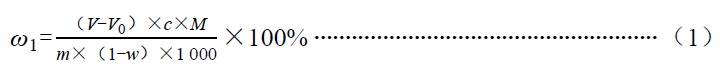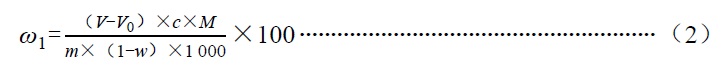 L-精氨酸含量(C6H14N4O2,以干基计)以质量分数ω1计,数值以百分含量(%)表示,按式(1)计算:
