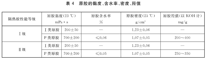 原胶的黏度、含水率、密度、羟值应符合表4规定。