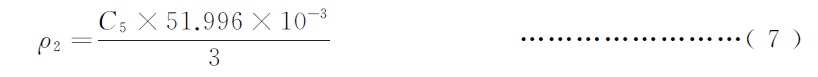 按式(7)计算硫酸亚铁铵标准滴定溶液相当于铬的质量浓度ρ2,以克每毫升(g/mL)表示: