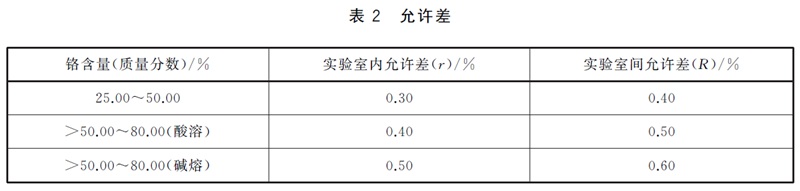 实验室内及实验室之间分析结果的差值应不大于表2所列允许差。