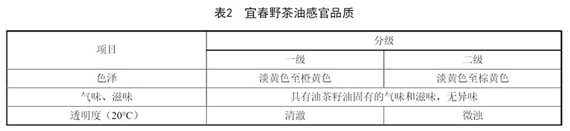 宜春野茶油感官品质见表2。