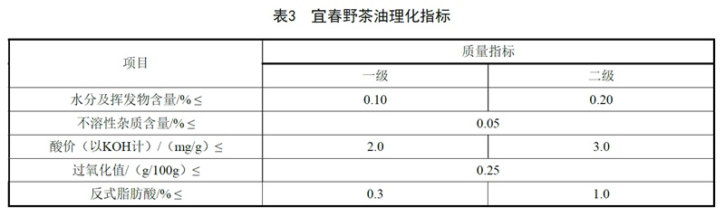 宜春野茶油理化指标见表3。