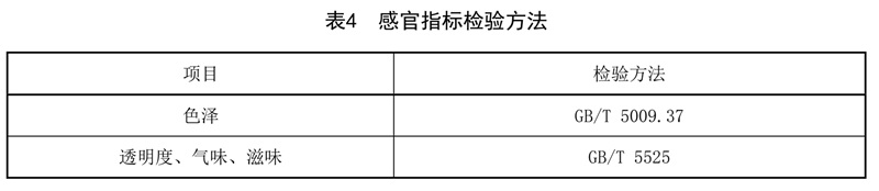 感官指标检验方法见表4。