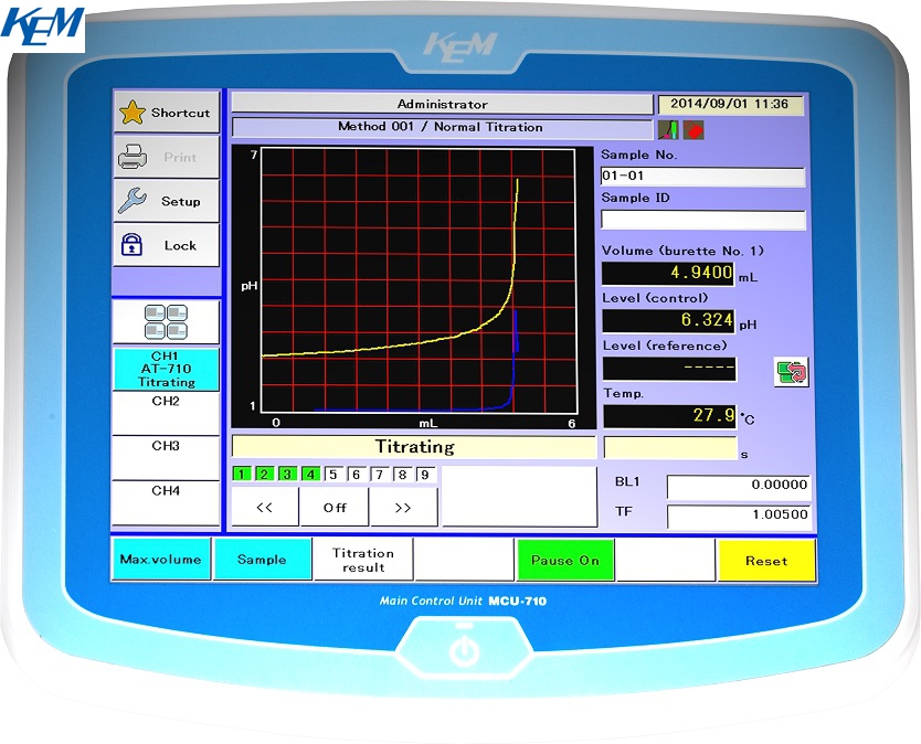 滴定方法: 标准方法120组,方法结合10组(最多可结合5组标准方法)。