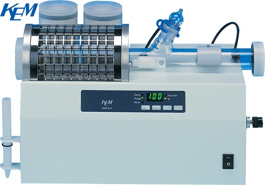 日本京都电子KEM推出的MKC-710S库仑法卡尔·费休水分测定仪与ADP-611水分蒸发器联用,用于测定塑料、橡胶等样品的水分含量,符合ASTM D6869、ASTM D5460、ISO 15512、ISO 12492、GB/T 45128、GB/T 37191、SH/T 1770多项标准方法。样品经称量后置于ADP-611加热炉中,水分在高温下蒸发并由干燥氮气载入滴定池,由MKC-710S以库仑法精确测定水分。