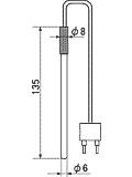用途:温度补偿温度范围:-5-100℃检测元件:热敏电阻电缆:集成式尺寸:长度135mm, 直径6mm特点:电缆0.7mm
