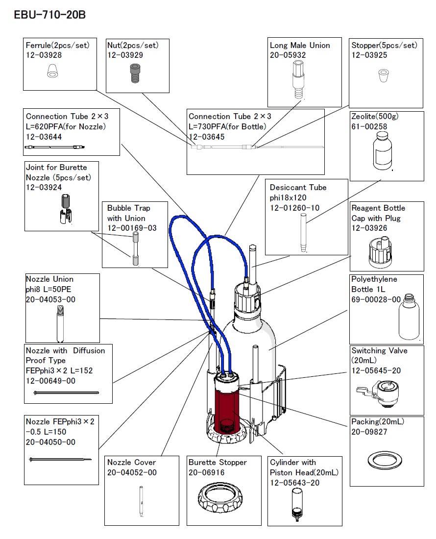 EBU-710-KF: 10mL滴定管, 准确度: ±0.015mL, 重复性: ±0.005mL(KF Buret Unit)。货号: 12-05641-11。